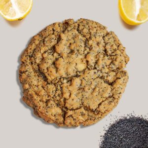A refreshing burst of lemon zest with crunchy poppyseeds and a touch of coconut, making this chewy cookie a light and tangy treat.