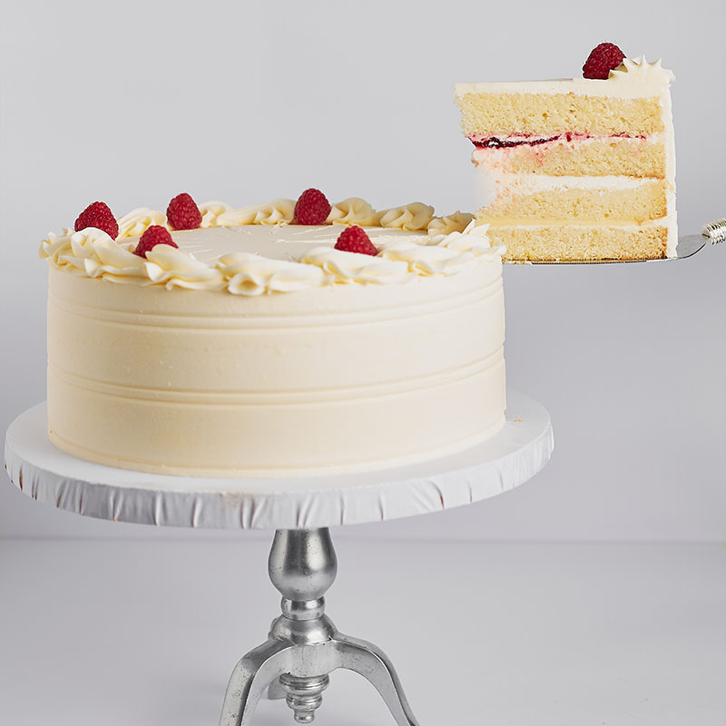 A zesty lemon sponge with a fresh burst of lemon curd and raspberry jam, finished with smooth lemon buttercream.