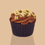 A decadent red velvet cupcake, crowned with classic icing and a sprinkle of velvety crumbs—pure red velvet bliss.