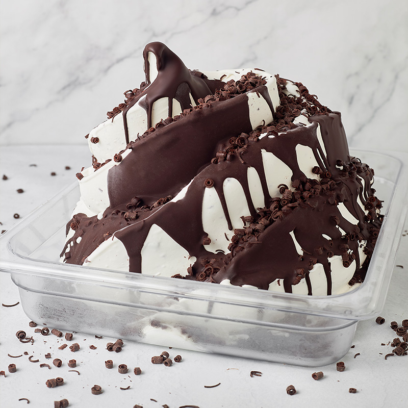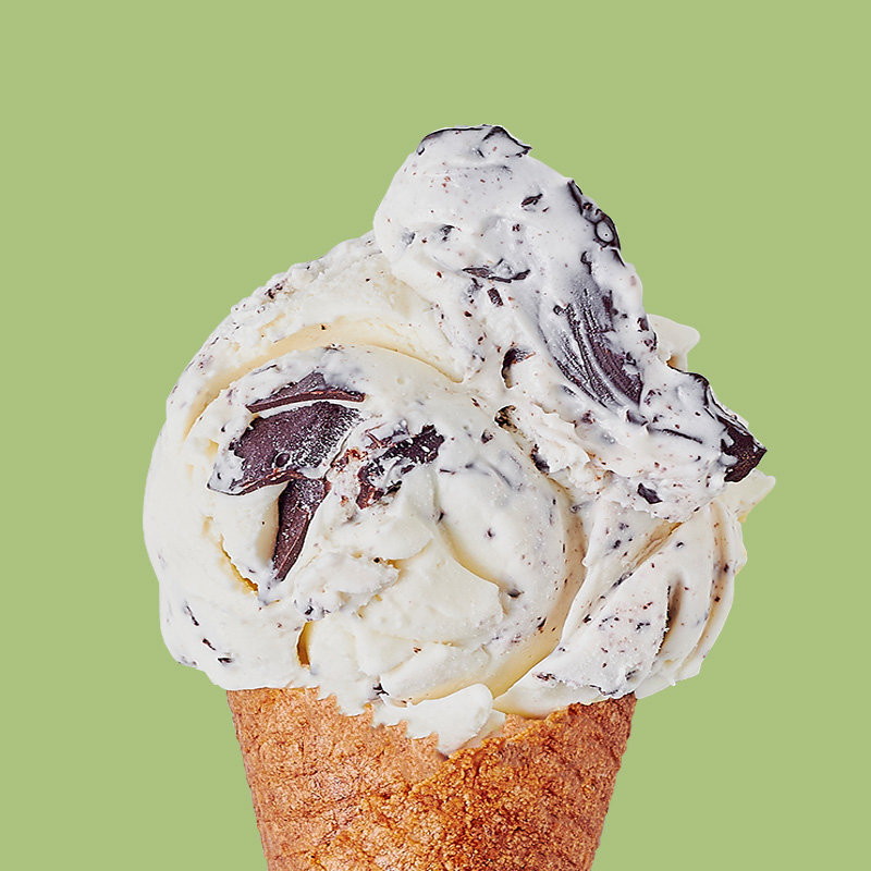 Creamy vanilla gelato swirled with specks of dark chocolate.